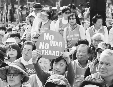 当地时间11日下午,600余名来自韩国庆尚北道金泉市及星州郡的居民在美国驻韩国大使馆附近举行反对“萨德”抗议集会,高呼“‘萨德’离开,和平到来”“不要‘萨德’要对话”等口号,要求政府撤回部署“萨德”的决定。同日,韩国圆佛教在首尔市普信阁前举行大规模反对“萨德”抗议集会(见图,记者马菲摄)。