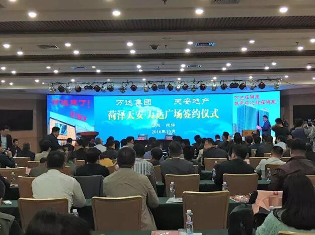 菏泽万达广场项目为我市2016年重点招商项目,经过半年的不懈努力,菏泽天安房地产有限公司终于与万达商业地产股份有限公司达成合作协议,并与今天正式签约,立即启动项目建设,这标志着菏泽面临一个崭新的发展契机,它是菏泽发展过程中的历史新坐标,将使城市更加璀璨夺目,人民生活更加美好,对我市加快城市建设步伐、提升城市整体形象具有重要意义!