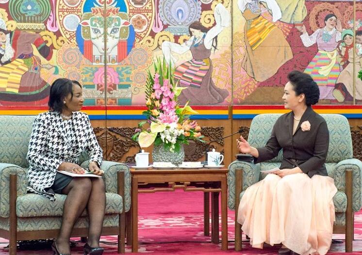 11月1日,国家主席习近平夫人彭丽媛在北京会见马拉维总统夫人、非洲第一夫人抗击艾滋病联合会副主席格特鲁德。 新华社记者 王晔 摄