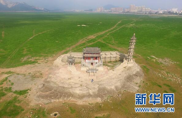 庐山市地标性建筑“落星墩”周边已完全干涸(11月2日摄)。新华社记者 胡晨欢摄