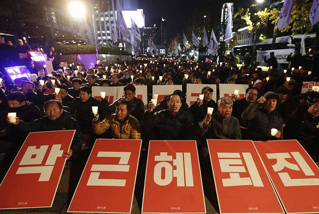 12日晚,数十万韩国民众在首尔举行示威集会,要求朴槿惠下台。三大在野党正在发起全国性的“倒朴运动”,试图逼迫朴槿惠引咎辞职。
